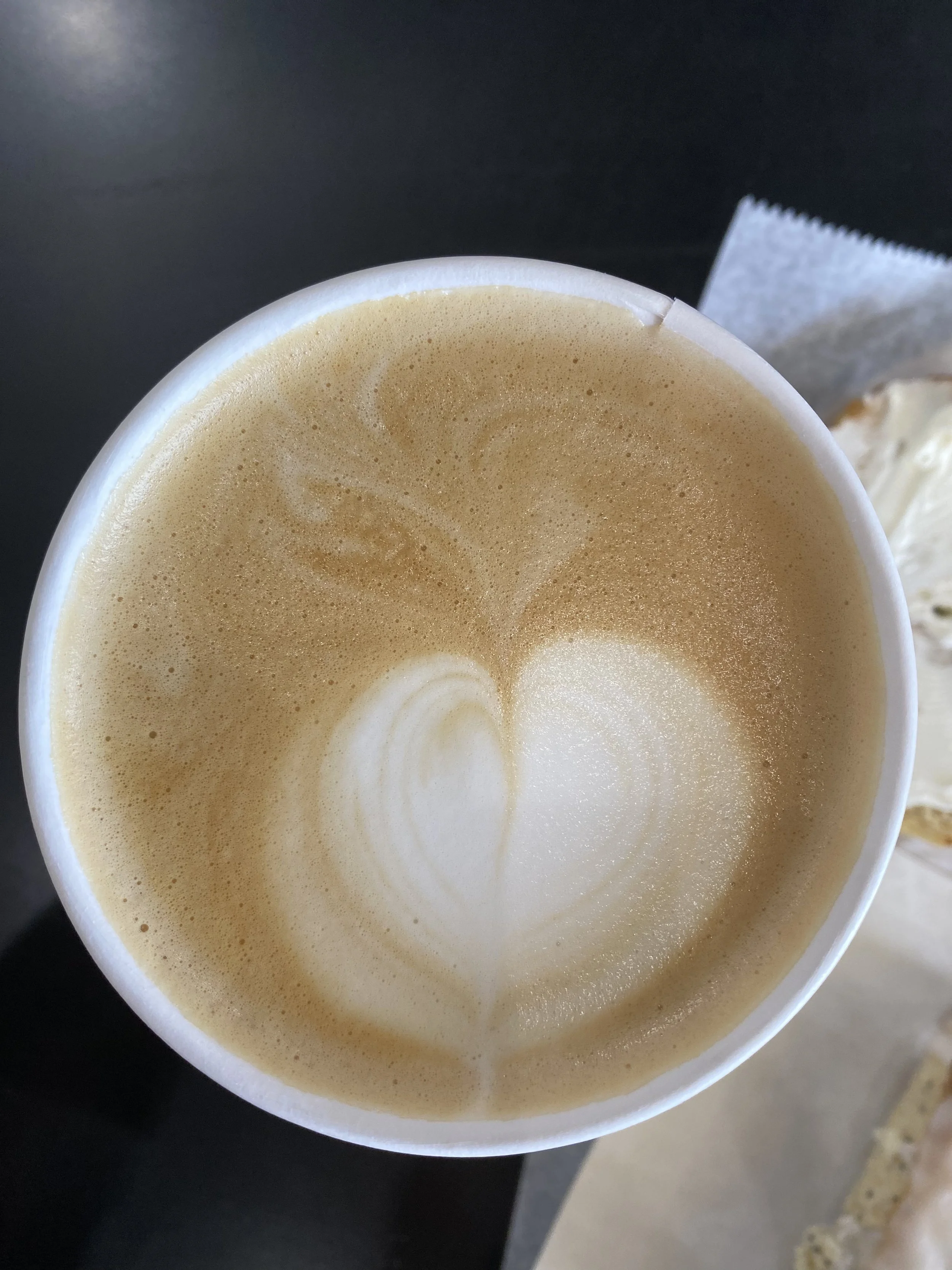 We had the lavender, lemon scone, the lemon, poppyseed scone, and we shared an Asiago bagel. I had a vanilla latte, and my husband had a black out coffee (also known as a red eye). Everything was tasty, but the customer service made this beyond a five star experience, for sure.